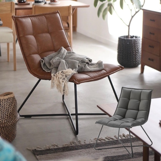 デザイナーズ家具を思わせるスタイリッシュなフォルム。 アイアンの脚とレザー調の座面は、インテリアオブジェにもなるチェア。 部屋に一つ置いておくだけで、印象が違います。 懐かしさを覚えながらも古臭くないデザインのレトロなパーソナルチェアです。 座り心地や快適さを求めていきたい、また長く愛用していきたいと考えるユーザーに向いている椅子。 ソフトレザー(レザー調)の座面はやさしい座り心地。 適度なリクライニングはゆったりくつろぐことが出来ます。 カラー:ブラウン、ブラック サイズ:W62×D74×H84×SH42 (単位cm) 仕様:スチール(粉体塗装) 、ソフトレザー 付属工具:六角レンチ 組立目安人数・時間:1人 20分 耐荷重設定:80kg 商品重量:8.0kg 生産国:中国 注意事項 ・北海道・沖縄・中継便地域には中継料が必要な場合や、お届けできない場合があります。別途ご相談ください。 ・商品画像は照明・お使いの端末のディスプレイの関係により色味が違って見える場合があります。 商品管理番号:AZ-MYS-301BR、AZ-MYS-301BK