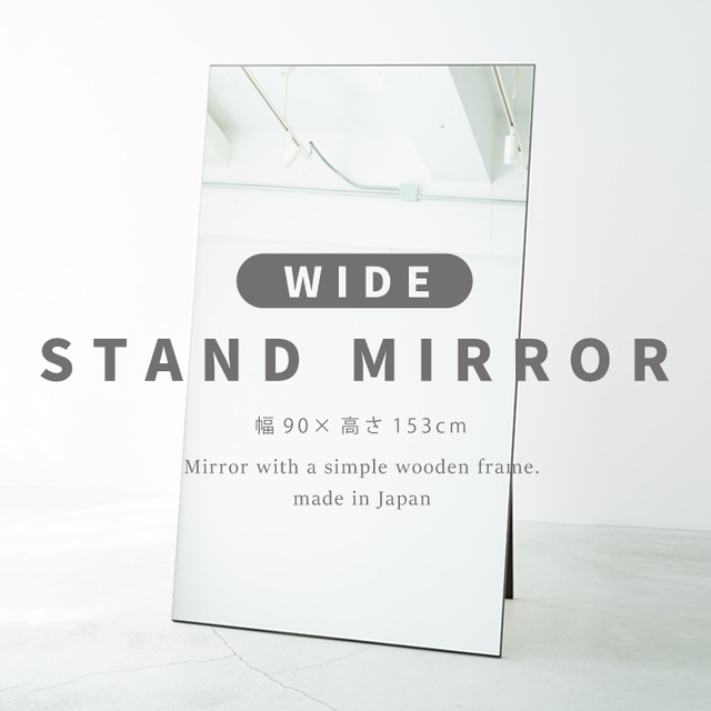 ヨガやダンスの練習におすすめ! ワイドサイズなのに圧迫感を感じさせないノンフレーム仕様。身だしなみチェックはもちろん、ヨガ・ダンス・フィットネスにも最適。置くだけでゆったり広々した空間が完成します。 並べて設置すると更にワイドに◎ノンフレームのため境目が気になりにくく快適にお使いいただけます。 塗装には安全性の高いF☆☆☆☆のウレタン樹脂塗料を使用しています。 国内工場で職人が一枚いちまい丁寧に製造したミラーは繊細で無駄がなくながく寄り添える上質なデザイン。 支え部分にはこだわりの無垢材を使っています。 用途や場所に合わせて選べる2色をご用意しています。 [ホワイト・ブラウン] ・折りたたみ可能 =ご注意= 天然木の性質上、木目の柄や節、色味などに個体差がございます。 ご理解の上ご注文いただきますようお願いいたします。 ■商品サイズ:幅900×奥行440×高さ1530mm ■商品重量:約14.1kg ※サイズの誤差は多少生じることがあります。 ■素材:天然木(ツガ材)・ミラー(3mm厚) ■塗装:ウレタン塗装 ■日本製 ■完成品 注意事項 ■出来る限り実物に近いお色にて画像を掲載しておりますが、PCモニターなどの環境のちがいにより若干異なる場合がございます。 ■商品の保証期間はございません、初期不良のみの対応とさせて頂きます。 ■沖縄・離島へは出荷不可です。ご了承ください。 商品管理番号:9000