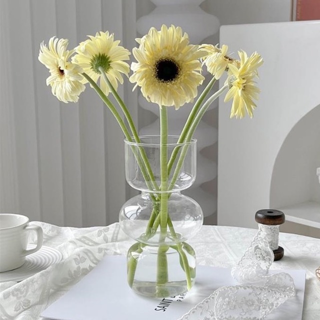シンプルかつ上品なデザインが特徴のガラス製の花瓶です。 昔から縁起物として親しまれてきたひょうたん。その独特な形状はフラワーアレンジメントをより一層引き立たせてくれます。 花を活けるだけでなく、季節の装飾やインテリアとしても使える丸瓢箪は使い方次第でさまざまな表情を見せてくれます。 リビングルームや玄関先、ダイニングテーブルなど、どんな場所にもマッチする万能なアイテムです。 ■カラー:グレー,グリーン ■サイズ:S・L 注意事項 ※すべて平置きサイズです。 採寸方法により多少の誤差がございますのでご了承ください。 ※モニターの都合上掲載写真と実際の色が異なる場合がございます。 商品管理番号:NEWJY2022061104