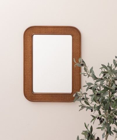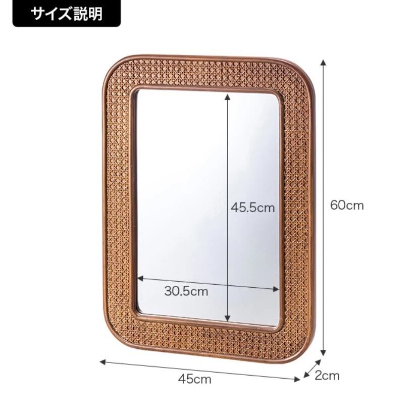 仕様:天然木(ミンディ)、 ラタン、ラッカー塗装 3mm飛散防止ミラー