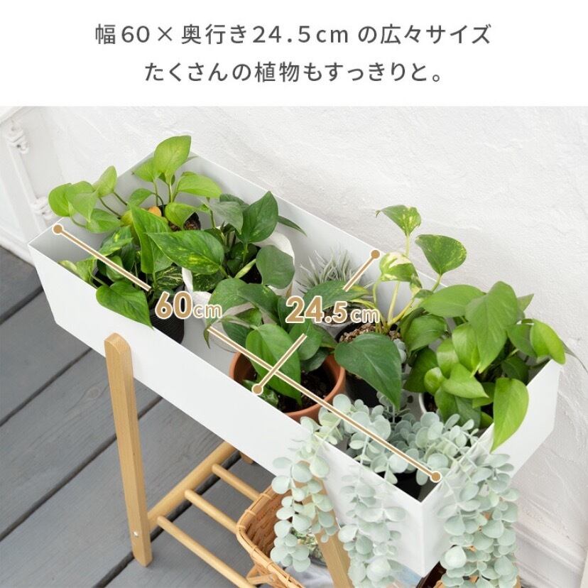 やさしい色合いとナチュラルな木を組み合わせた、おしゃれなプランターラックです。
