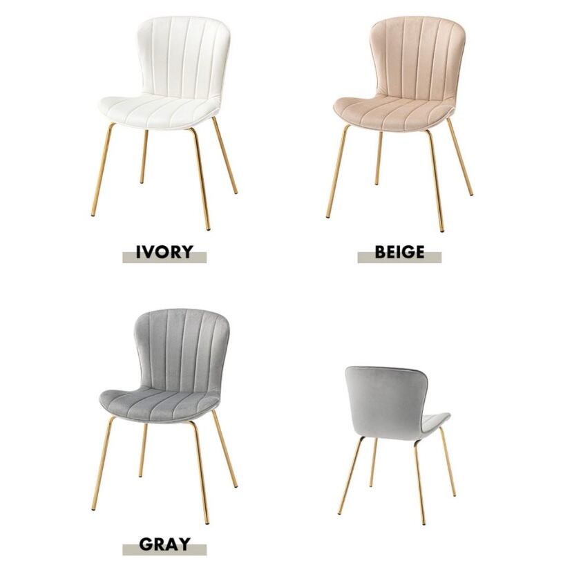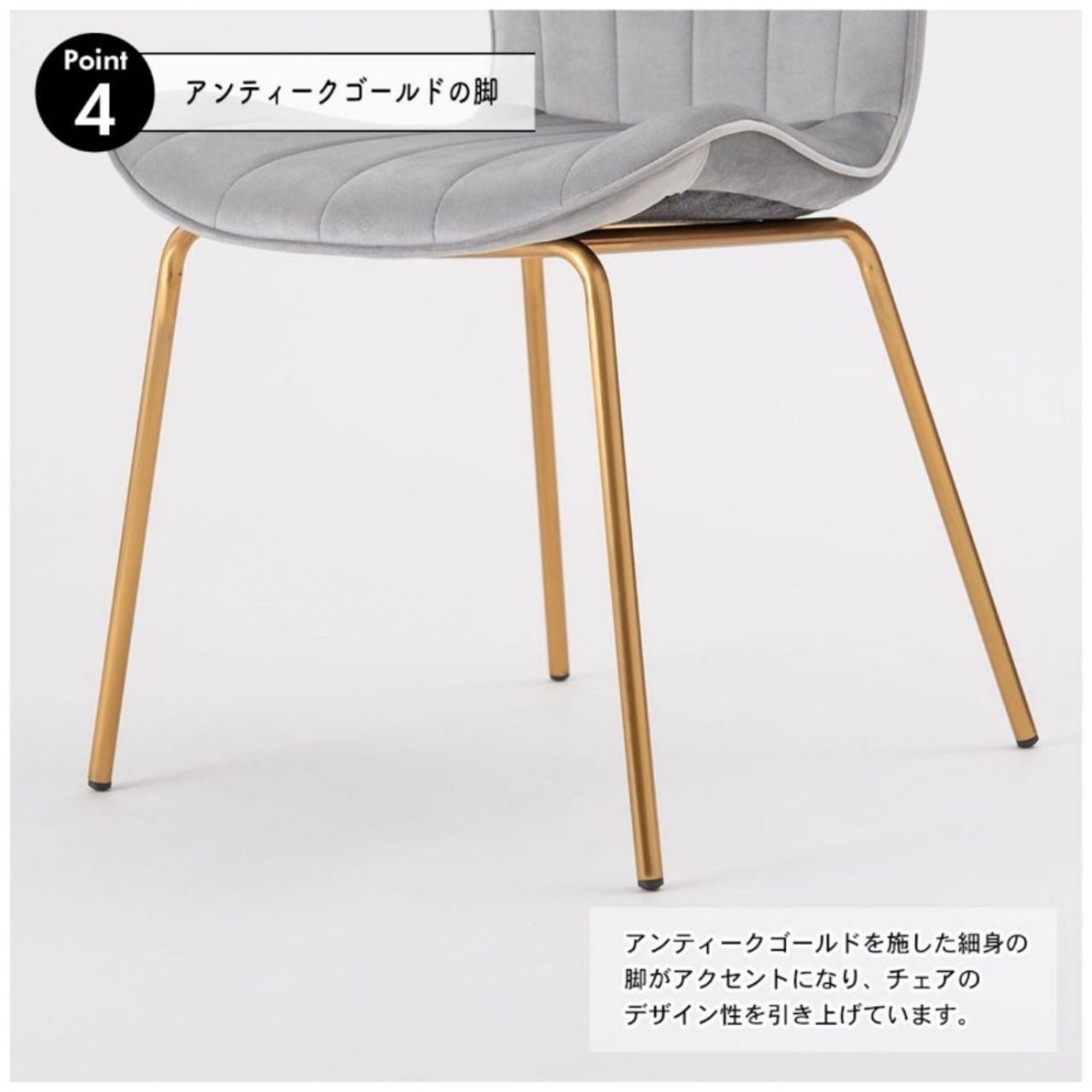 ベロア調の生地×アンティークゴールド脚の組合せが、ガーリーでトレンド感のある雰囲気を演出。