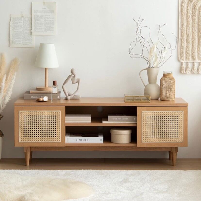 天然ラタンと美しい木目調を使用した、上質さ溢れる『Komero(コメロ)』ラタンテレビボード