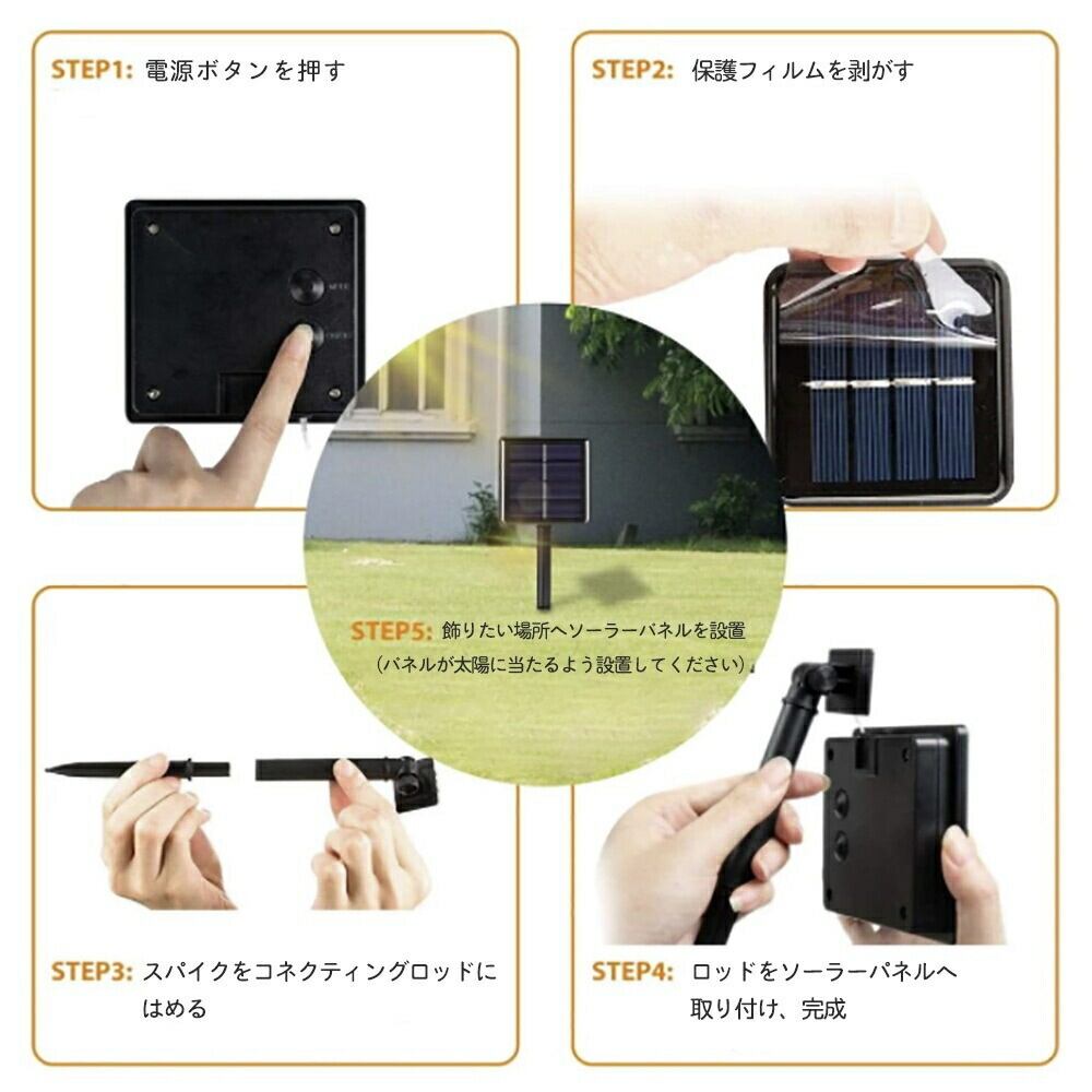 【省エネ・防水】ソーラー式で電気代は一切不要です。日当たりの一番良い場所に設置するだけ!パネルも銅線ライトも防水加工を施しており、悪天候でもご使用いただけます。