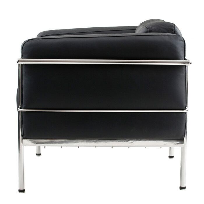 LC2に比べて硬く、サイズ的にもゆったりしたソファとして多くの方から支持されています。また、背もたれや、座面の高さがLC2より低くなっている為に部屋が大きく見えるのもLC3の特徴です。コルビジェの建築イズムでもある、水平、垂直、直角のデザインがモチーフになってる事が伺えます。現代のモダンな住宅やオフィスにとてもよく似合う作品です。