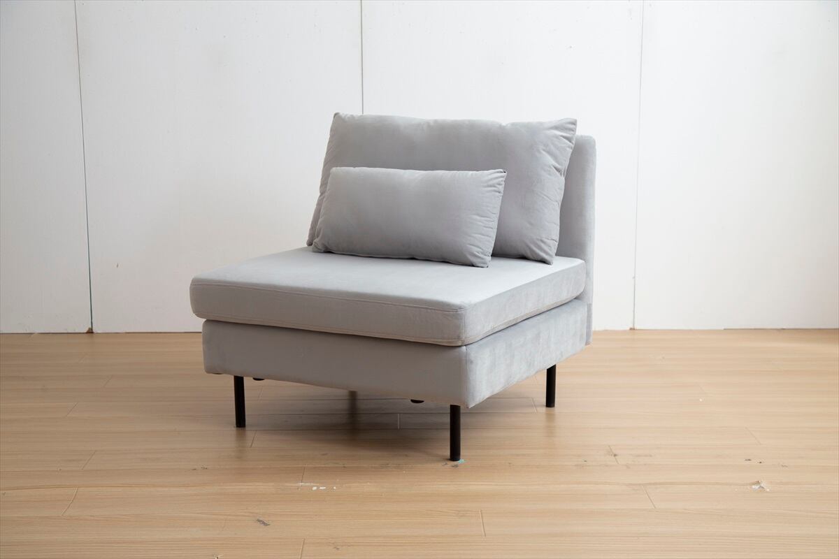 ソファと同じ生地を使用したクッション1個付き。膝の上に乗せたり腰当てなどにも使えるので便利です。