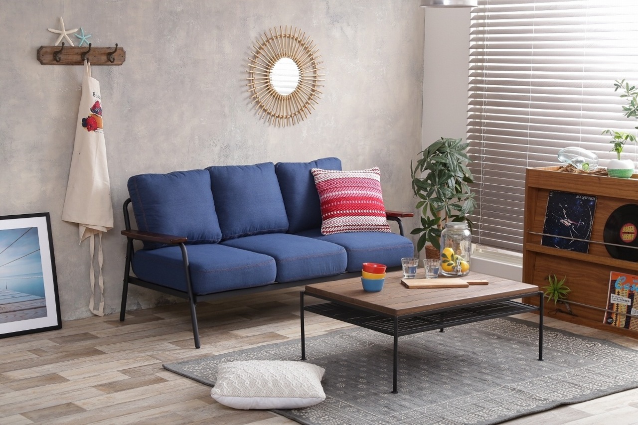 鮮やかなブルーのデニム生地。西海岸テイストのインテリアとも相性バツグンです。