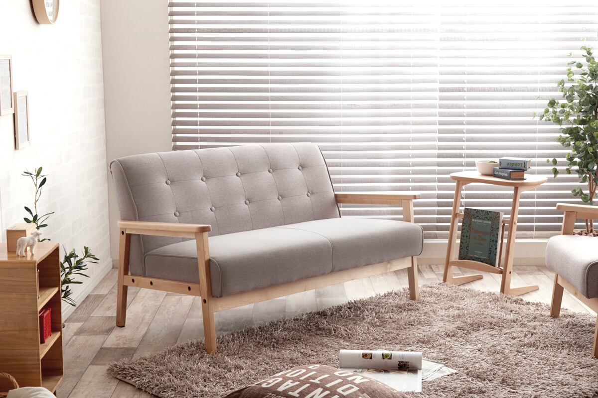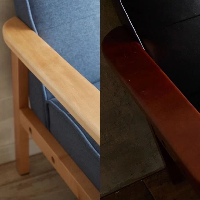 肘掛けには天然木を使用しております。天然木を使用することでソファに高級感をもたらしております!