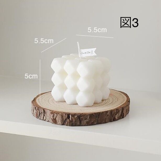 ホワイトカラーのキャンドルに幾何学的な形が特徴的で、複数のパターンからお選びいただけるのでお好みやシーンに合わせて使用することができます。