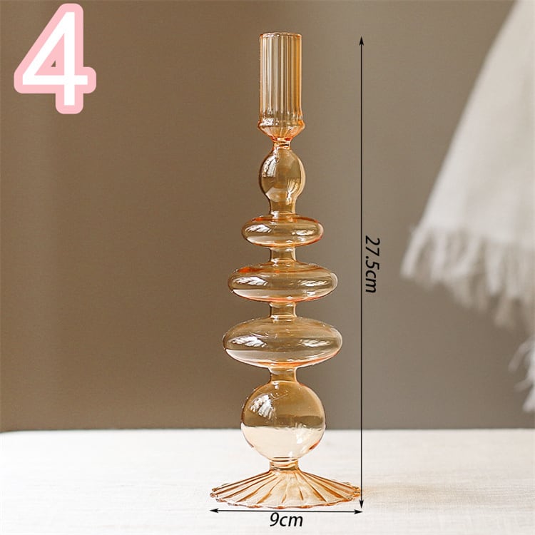 ガラス製の燭台なのでキャンドルの灯りが美しく広がります。