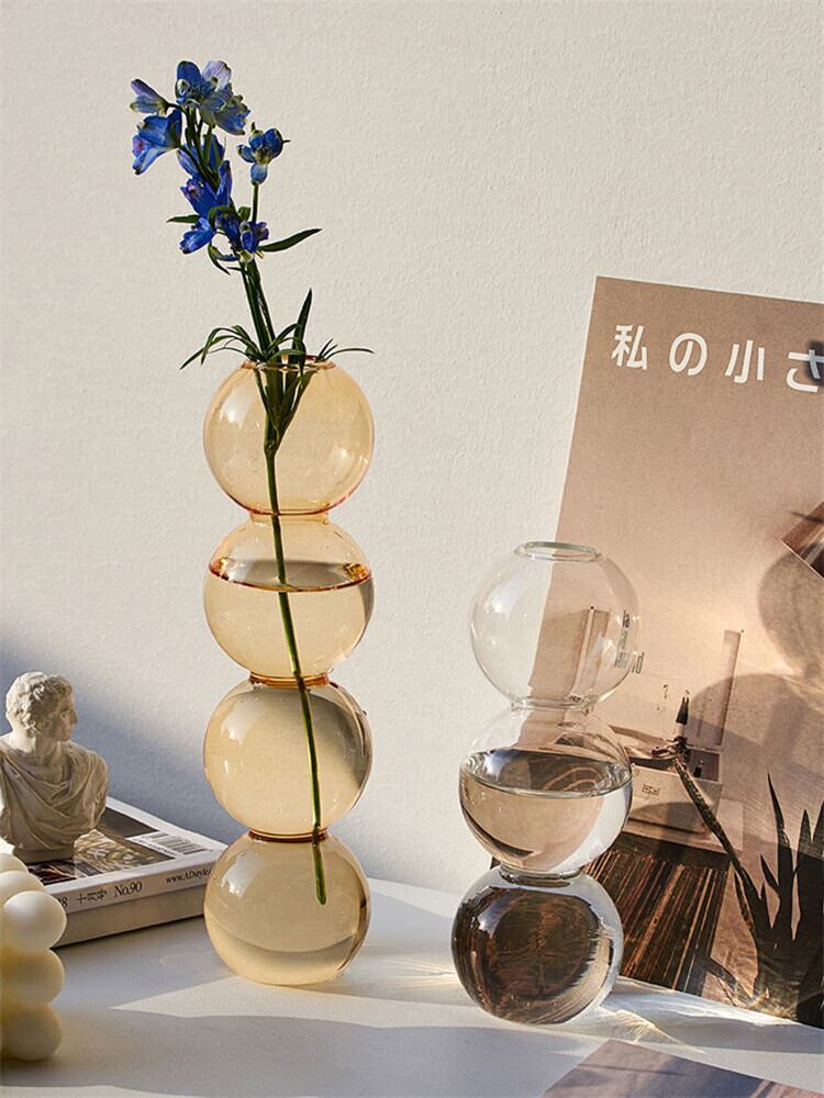 透明な素材で作られたこの花瓶はお部屋のインテリアにぴったりの一品。