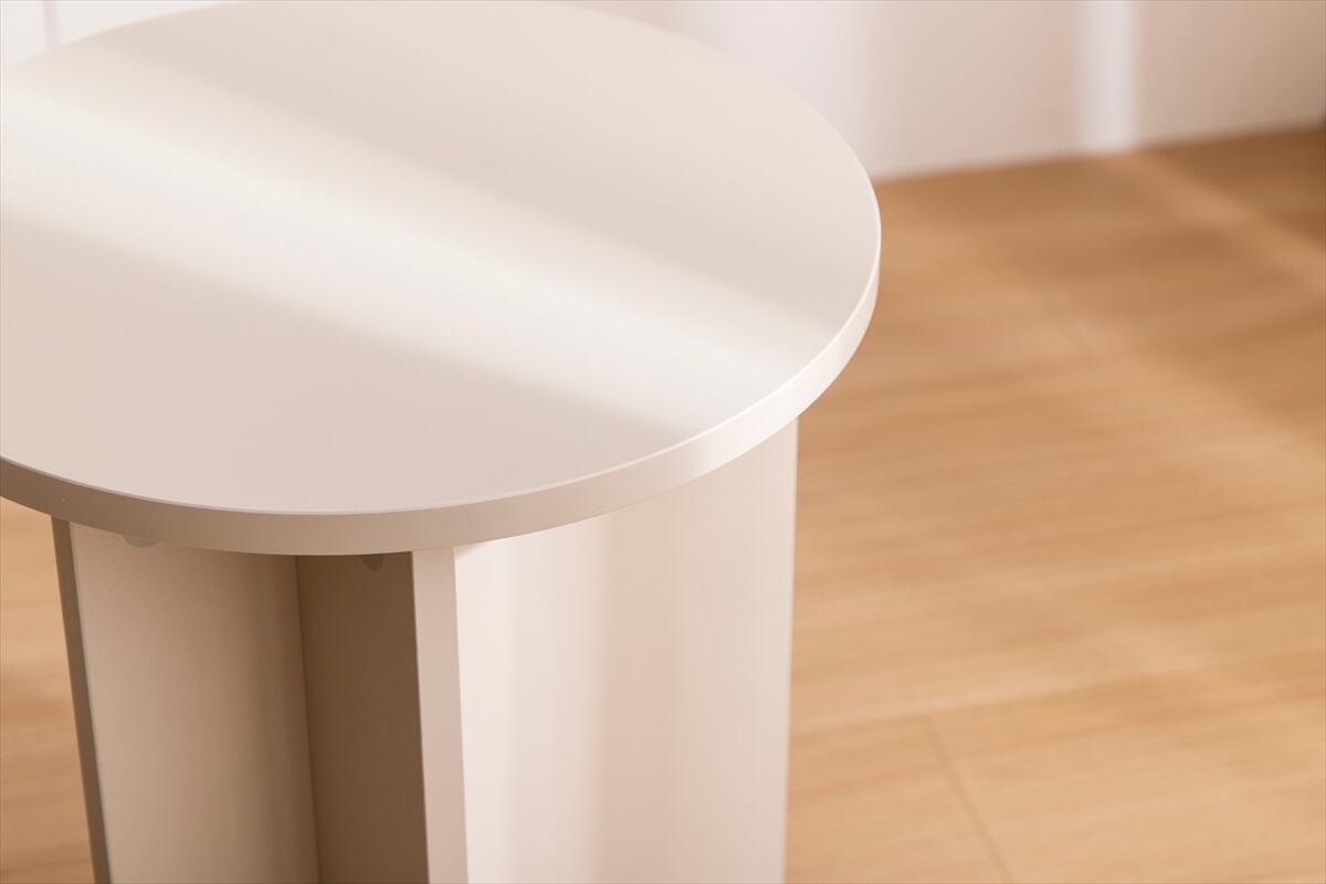 天板はなめらかな曲線のラウンド型。柔らかで優しい印象を与えるだけでなく、角がない円形タイプなので、どの方向からも使える柔軟な形も魅力です。