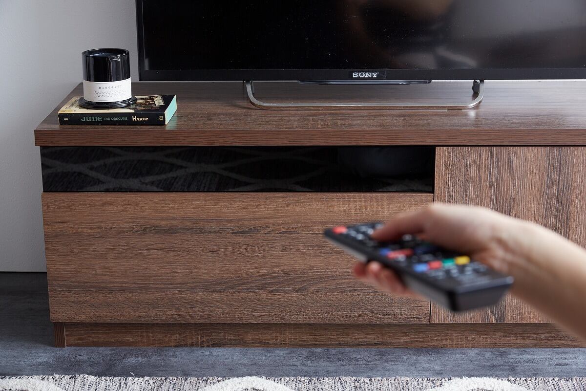 引き出しの上部にはAV機器収納スペースがあり、レコーダーなどを収納するのにピッタリです。ガラス越しにリモコンの電波が届くため、引き出しを開ける手間なくリモコンを操作することができます。