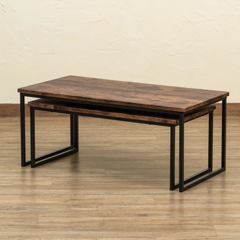 大小異なるサイズの2点セットで小さいサイズは大きいサイズのテーブルの下に収まる入れ子式です。