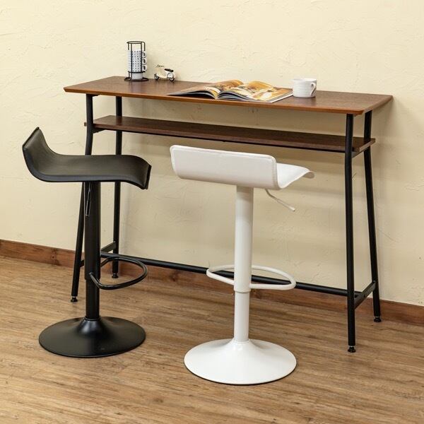 木目柄の天板と丈夫なスチールを組み合わせたカウンターテーブル。お部屋で気軽にカフェ気分を楽しめます。