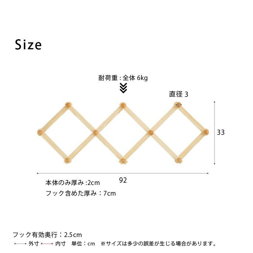 木の質感、色味、触り心地をそのまま楽しめる天然木仕様。フックにも天然木を使用しており温かみのあるホッとする空間に。