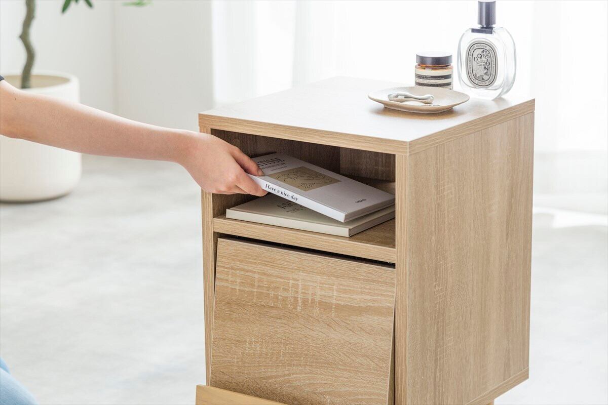 フラップ扉で生活感を隠しておしゃれに魅せる『Tony(トニー)』のサイドキャビネット
