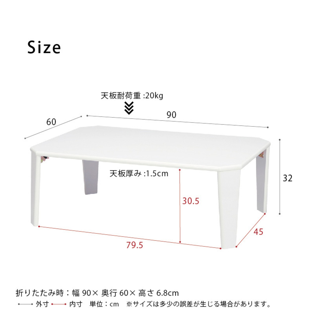鏡面加工とは光沢があり鏡のように映り込む美しい仕上げです。汚れてもお手入れしやすく普段使いに最適です。天板と脚は同じ質感でスタンダードに使いやすいデザイン。折りたたみ式でコンパクトに収納可能。