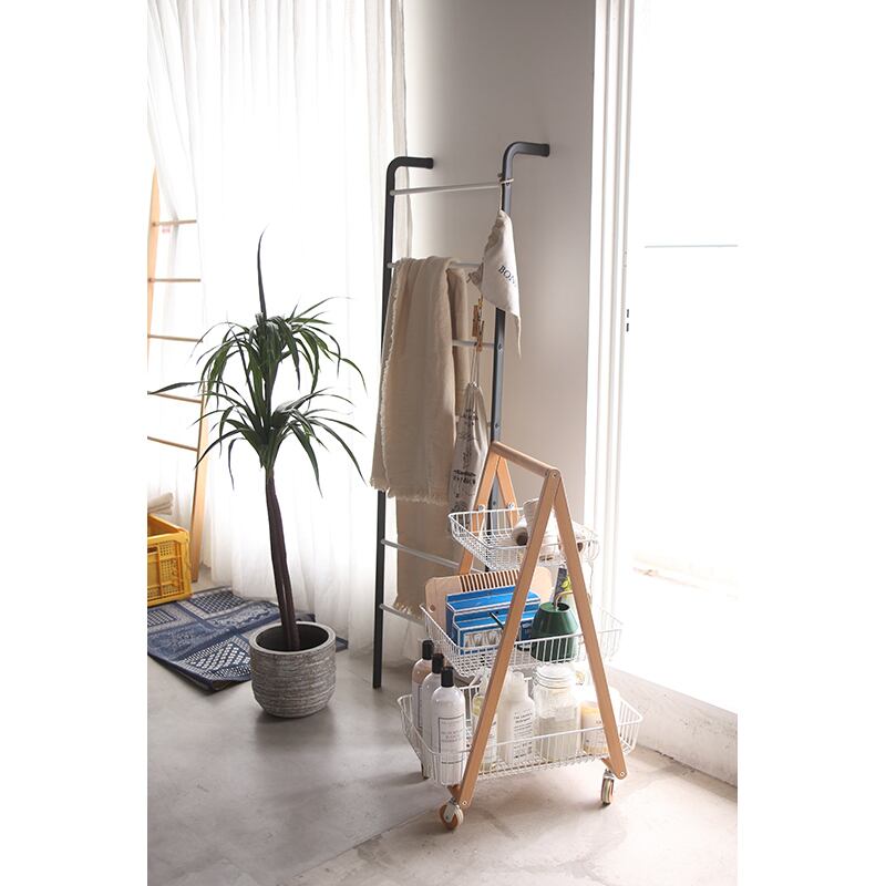 天然木とスチールの優しい色合いが、北欧ナチュラルなテイストを演出するバスケットワゴン”Sylph”。