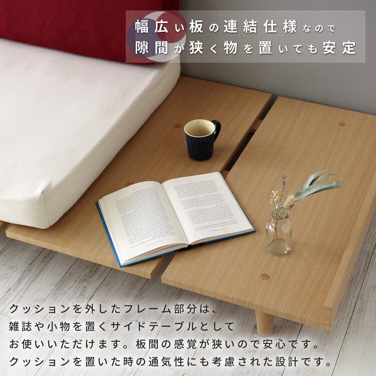 背もたれとしてクッションを壁に立てかけるとソファ・サイドテーブルとして使えるソファベッド・デイベッドです。