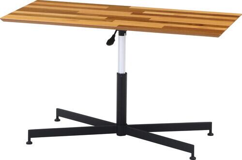 一本脚で空間を広く見せる、天然木のカフェ風昇降テーブル