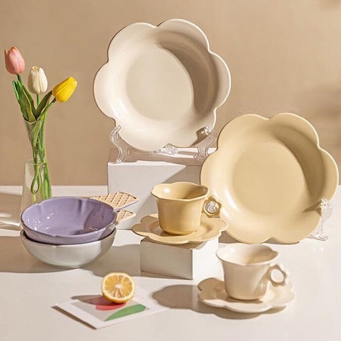 デザートだけでなく小さなおかずやスイーツを盛り付けるのにも最適なプレート。飲み物を注ぐと花が咲いているように見えるマグカップ。