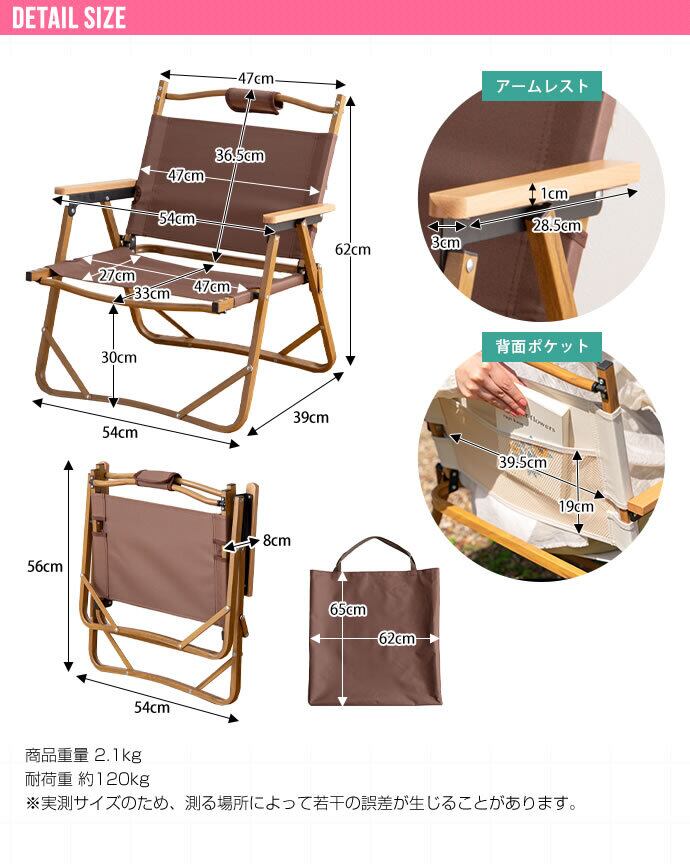 【チェア】幅54cm×奥行39cm×高さ62cm(折りたたみ時:幅54cm×奥行8cm×高さ56cm)