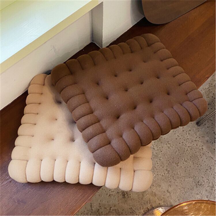 オフィスやリビングなど、どんな場所にも馴染むアイテムです。厚みがあり、座り心地も抜群。ビスケットのような形が愛らしいデザインで、目を引くこと間違いなし!忙しい日常の中で、ほっと一息つけるような存在になること間違いありません。