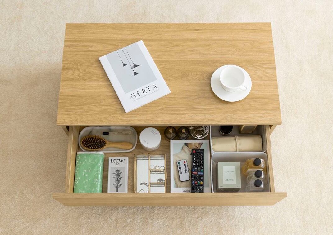 ノイズレスでフロート脚のデザインは、置くだけでアクセントとなり、洗練された空間へと導きます。また、大容量収納が可能な引き出しや隠しキャスターなど使い勝手にもこだわりました。高さも36cmとソファに座っているときでも床に座っているときでも快適にお使いいただけるよう設計。シンプルなのにこだわりの詰まったデザインと実用性を兼ねそろえたセンターテーブルです。