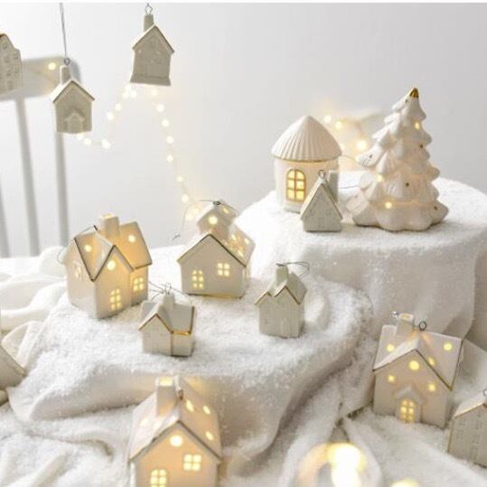 クリスマスシーズンを一層華やかに演出する、小さな家の置物です。