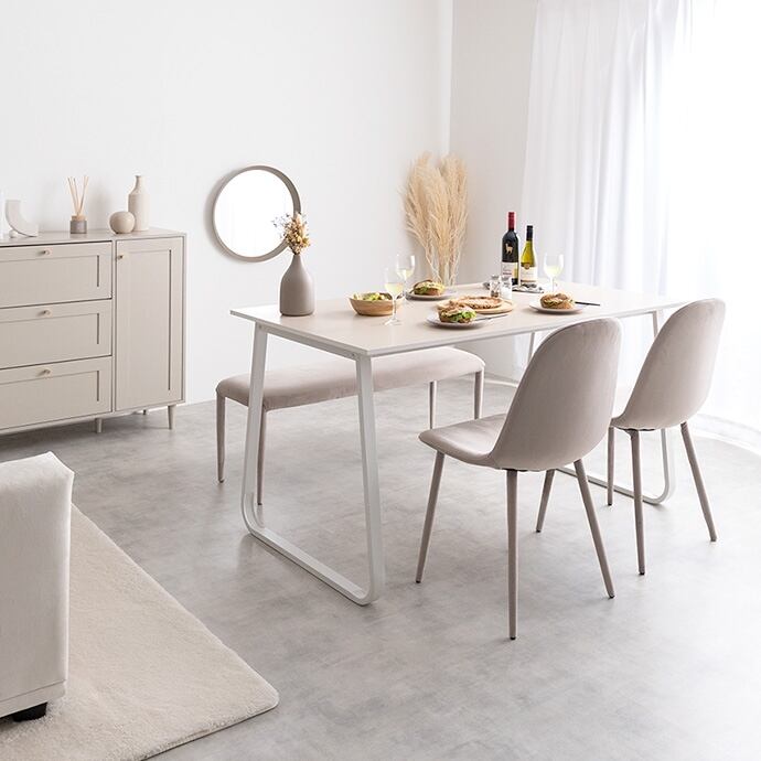 天板は一般的なサイズのダイニングテーブルと比べ、広め。最大、大人4人で座っても余裕があり、ゆったり使えるので食事や団欒時間を快適にお過ごしいただけます。
